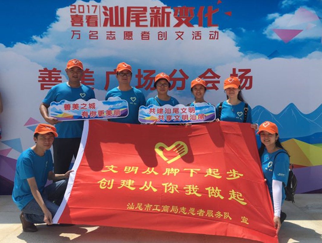 为营造全民”创文”的热潮,我市于9月14日隆重举行“喜看汕尾新变化—万名志愿者创文活动。”市工商局积极响应,组织局青年志愿者队伍参加活动,为决胜创建文明城市助力。今后市工商局志愿者还将更多地参与到志愿服务中来,让家园更美丽,让城市更文明。(市局工会供稿)。