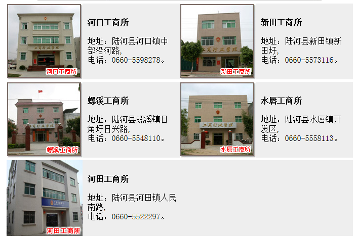 螺溪工商所、水唇工商所、河田工商所、新田工商所、河口工商所。
